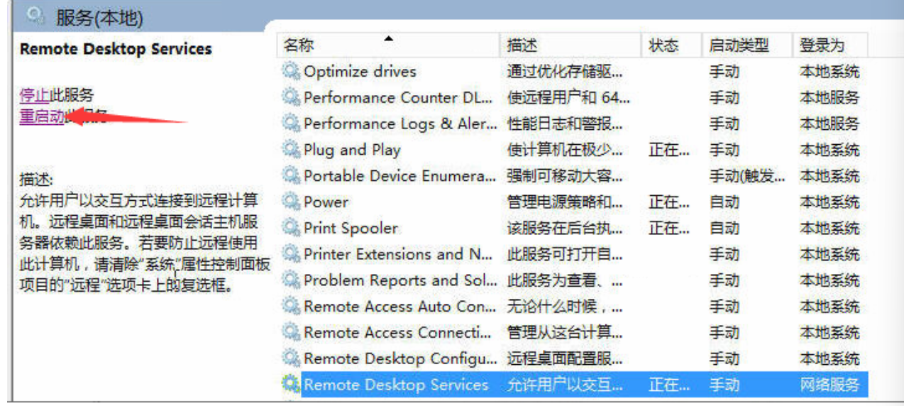 通过VNC上机器以后打开控制面板找到服务,然后依次找到以下服务,重启服务。