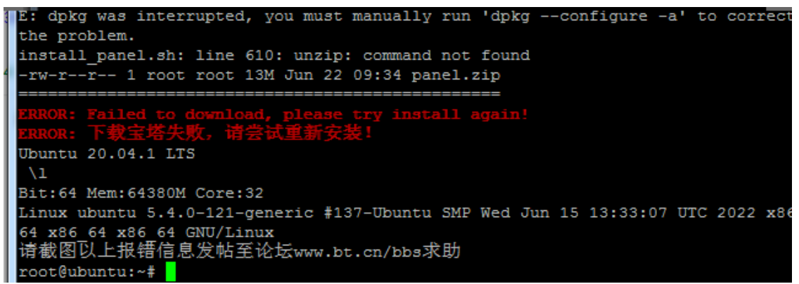 等待命令执行完毕后,重新安装宝塔即可。