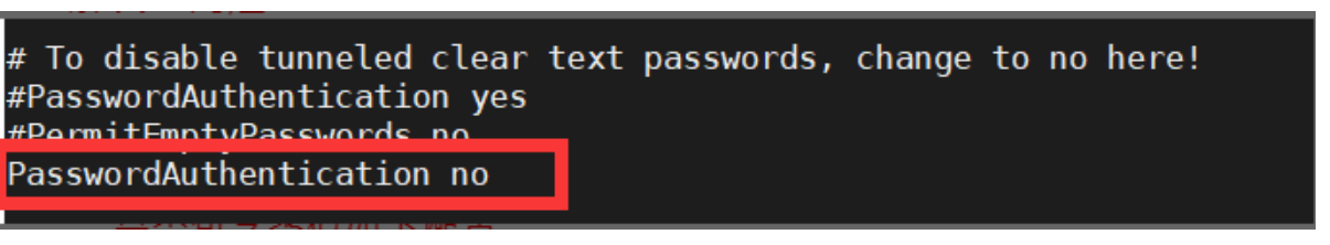 3、执行命令 vi /etc/ssh/sshd_config,按下 i 编辑SSH服务配置文件,将参数 PasswordAuthentication 设置为 yes,或者在 PasswordAuthentication 参数前添加井号(#),按下 Esc 退出编辑模式,并输入 :wq 保存退出。