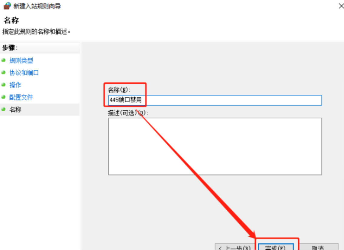 注意:此方法只针对防火墙已开启的情况下才能实现禁用端口