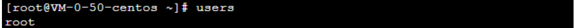 执行命令?users,通过?/var/run/utmp?查看当前登录的用户名。 返回结果如下图所示: